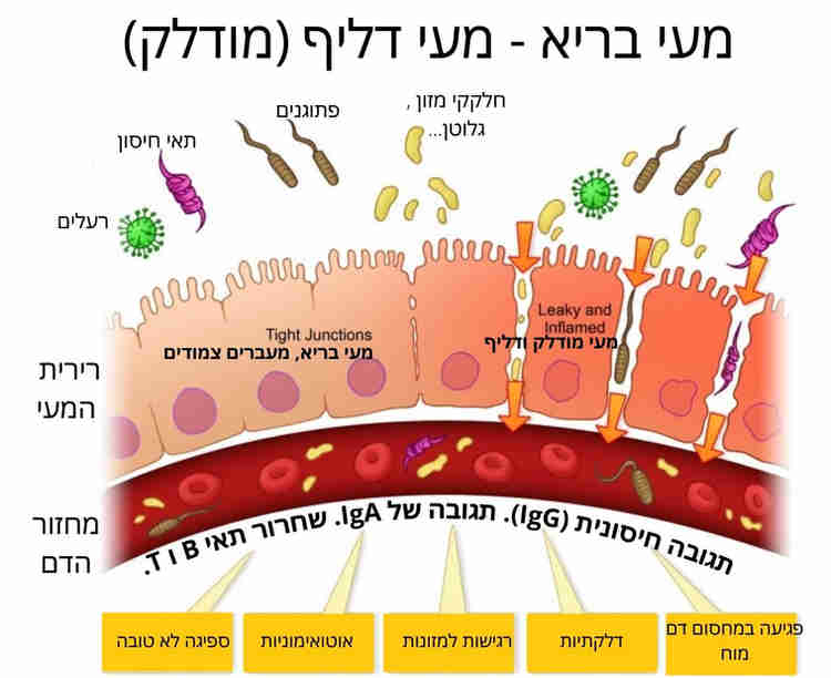 מערכת החיסון מגיבה על ידי יצירת תגובה דלקתית - אלרגית באזורים אלה. בשל הפתחים שיש במעיים, הרעלים ממשיכים להגיע לזרם הדם ולהשתקע בגוף והמצבים הדלקתיים הופכים לכרוניים (מקור 8). זה הורס רקמות במוח, באיברים ובמפרקים ומאיץ את תהליך דלקתיות והזדקנות של הגוף.